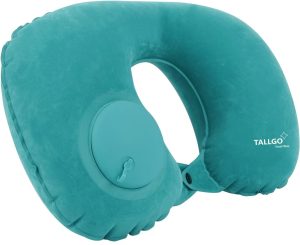 El juego de almohadas para el cuello de viaje de la marca TALLGO incluye una almohada inflable para el cuello, lo que la hace destacarse del resto de opciones similares en el mercado. Esta almohada cervical inflada tiene un buen tamaño de 40x20x10 cm, y su tela flocada se siente muy suave, lo que aporta comodidad durante su uso, tomando en cuenta que también su superficie del pelo mantiene la temperatura en el cuello. La opción de TALLGO cuenta con una característica denominada “bucle de apoyo”, la cual proporciona un apoyo completo a la zona del cuello y siendo asegurada por un botón para evitar resbalones indeseados.